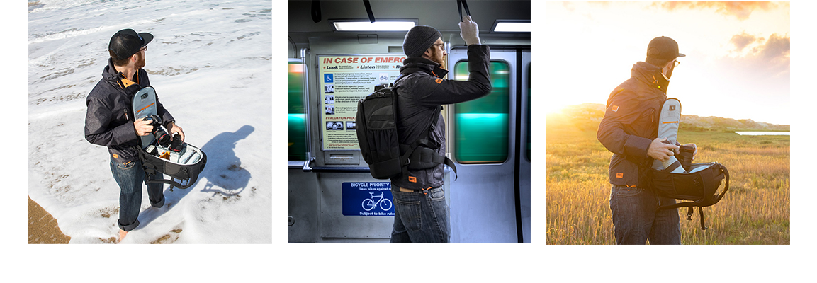 С внешней стороны предусмотрен специальный хомут, с помощью которого можно закрепить складной штатив. Фирменный карман CradleFit™ вмещает в себя смартфон или планшет диагональю до 7". Также, в рюкзак уже вшит чехол от дождя All Weather AW Cover™