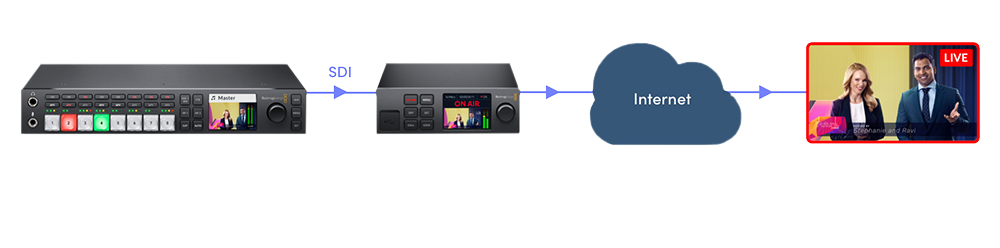 Оптимизация трансляцииBlackmagic Web Presenter — законченное решение, которое имеет мощную аппаратную начинку, ПО для соединения с платформами стриминга и сетевые разъемы. Благодаря такому функционалу отпадает необходимость в дорогом компьютере или комплексном программном приложении. Чтобы приступить к работе, достаточно подключить источник SDI-сигнала, например эфирный микшер или камеру, а затем получить доступ к Интернету через встроенный порт Ethernet или с помощью мобильного телефона. Настройки для самых популярных сервисов установлены заранее, поэтому нужно только ввести ключ трансляции и нажать кнопку ON AIR. Кроме того, можно одновременно использовать выход USB для передачи изображения на ПК в другое ПО |