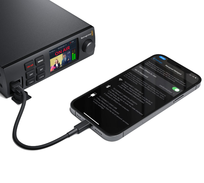 Доступ с помощью 5G- или 4G-смартфонаПри стриминге из удаленной точки или для создания резервной линии в дополнение к основному Ethernet-каналу можно использовать 5G- или 4G-смартфон на платформе Apple или Android. Его подключают через разъем USB на передней или задней панели, а обнаружение устройства выполняется автоматически. В этом случае сигнал будет передаваться через мобильную сеть. Кроме того, предусмотрена установка приоритета для доступа в Интернет первым или вторым способом. Такой функционал делает Blackmagic Web Presenter идеальным решением для трансляции из любого места |