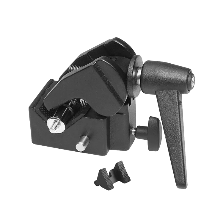 Зажим для установки студийного оборудования на элементы окружения и стойки. Имеет максимальную нагрузку в 15 кг, выполнен из алюминия