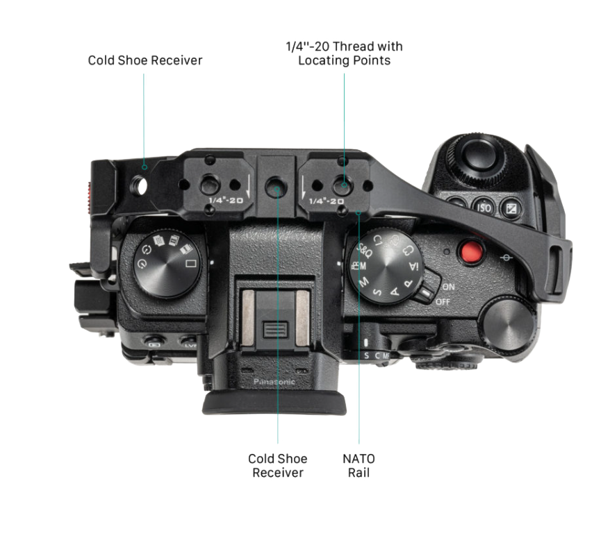 Модель имеет холодный башмак, на боковой части есть рельс NATO с отверстиями для винта 1/4" ARRI, что обеспечивает широкую совместимость с аксессуарами