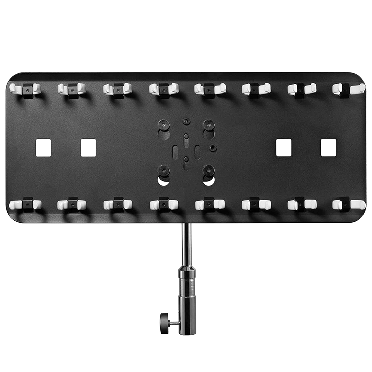 Данная модель крепления проста в установке и оснащена восемью спаренными зажимами для надежного крепления осветительных приборов к кронштейну. Монтажная платформа изготовлена из прочного авиационного алюминия и может быть отсоединена от держателя для настенного или поверхностного монтажа |