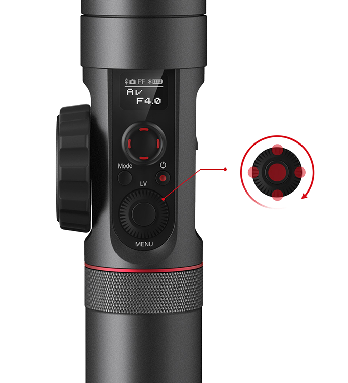 Новый OLED дисплей, расположенный на рукоятке, значительно упрощает и улучшает работу со стабилизатором, отображая уровень заряда аккумулятора, текущий режим работы и различные настройки камеры, позволяя держать всё под контролем