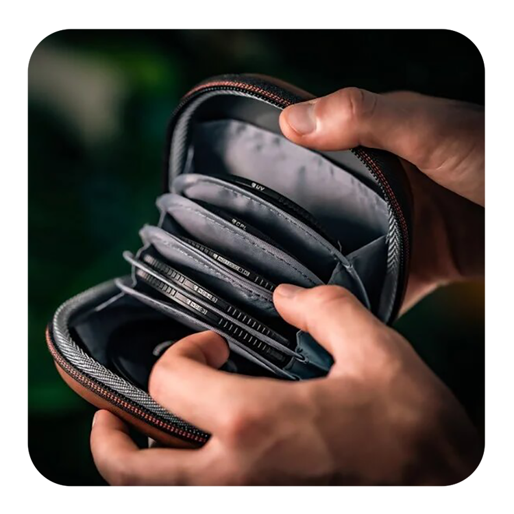 3-packВ комплект входит ND плотностью 1000 для работы при ярком свете. CPL фильтр поможет избавиться от бликов и отражений на неметаллических поверхностях, а UV отсечет лишнее излучение, устраняя световую дымку, а также может быть использован в качестве защитной линзы. Весь комплект хранится в защитном кейсе с отдельными кармашками |