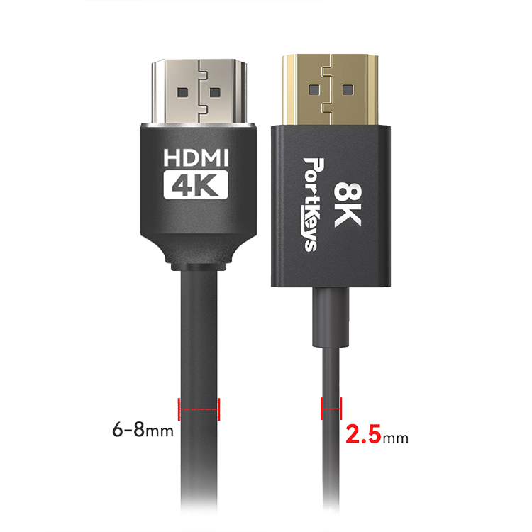 Для большого формата Передавайте видео с разрешением до 8K60 с помощью ультратонкого 10-жильного коаксиального HDMI-кабеля от Portkeys. Поддерживает сигнал до 8K60 и 4K120, а также динамический HDR