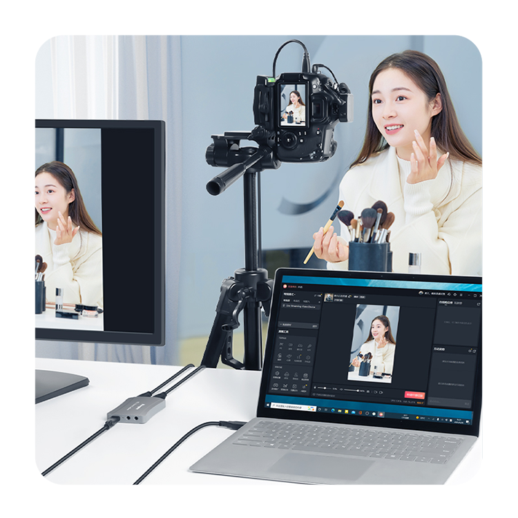 Устройство видеозахвата BMU037 открывает новые возможности для стриминга и записи видео. Оно обеспечивает сквозную передачу видео в потрясающем качестве 4K при 60 кадрах в секунду, одновременно записывая материал в плавном и детализированном разрешении 1080P/60 по Type-C. Низкая задержка и технология 60 FPS практически устраняют размытие в движении, что критически важно для динамичных игр и трансляций, где важна каждая деталь. Благодаря высокой частоте кадров и минимальной задержке около 14 мс, ваши трансляции становятся невероятно плавными и четкими