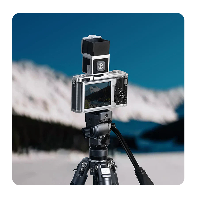 Магнитный козырек мгновенно раскрывается одним движением, эффективно защищая поле зрения от бликов. Универсальное крепление на холодный башмак обеспечивает совместимость с широким спектром камер, включая модели Ricoh GR III/X, Fujifilm X100VI, Sony серии a6000 и другие популярные системы. Корпус из алюминия с текстурой под кожу сочетает прочность с тактильным комфортом, а защитное покрытие из ABS-пластика предотвращает повреждение камеры
