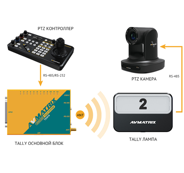 Система Tally отличается широкой совместимостью, так как основной блок поддерживает различные интерфейсы, включая GPIO/USB/RS232/RS-485. Благодаря широкому спектру интерфейсов, эта система может успешно применяться в различных сферах, включая работу с видеомикшерами и программным обеспечением VMix