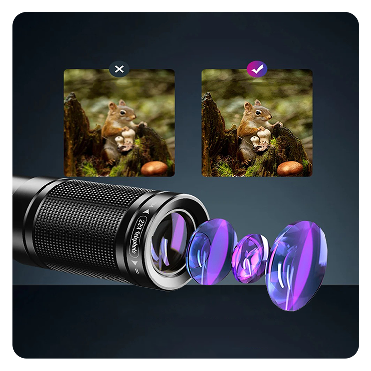Оптическая система и конструкцияВ основе объектива лежит многоэлементная оптическая схема из высококачественного стекла с многослойным просветляющим покрытием. Эта система обеспечивает эквивалентное фокусное расстояние, позволяющее захватывать детали на расстоянии в сотни метров. Конструкция корпуса выполнена из износостойкого алюминиевого сплава, который обеспечивает защиту линз от механических воздействий. Объектив поддерживает работу с широким диапазоном диафрагм камеры смартфона, сохраняя высокую светопропускаемость и минимальные оптические искажения |