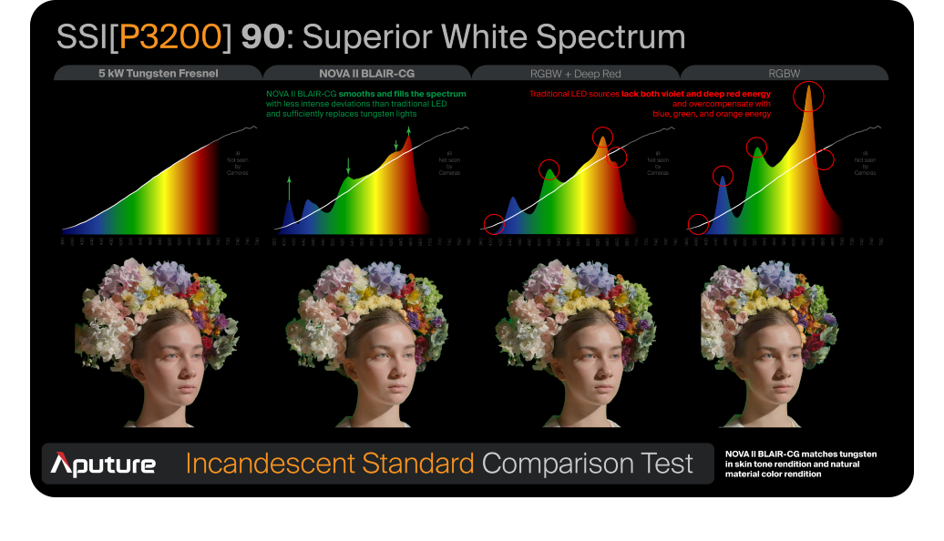 Расширенный контрольВ основе осветителя лежит продвинутый чипсет BLAIR-CG с архитектурой из семи диодов, объединяющий синий, лаймовый, янтарный, индиго, красный, голубой и зеленый излучатели. Эта инновационная конструкция обеспечивает безупречное спектральное воспроизведение в расширенном диапазоне 1800K–20000K с полной регулировкой по зеленому и пурпурному (±G), соответствующей стандарту ASC MITC. Это дает операторам и гафферам исключительную возможность точно согласовываться с окружающим светом и создавать смелые цветовые контрасты |