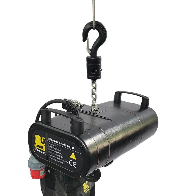 Электрическая цепная лебедка Coreat V05 D8PLUS в легком алюминиевом корпусе создана для вертикального перемещения светового, звукового и декорационного оборудования весом до 500 килограммов. Соответствует строгому международному стандарту безопасности D8 PLUS с двойной тормозной системой. Трехфазный двигатель мощностью 400 Ватт обладает универсальностью подключения: он может работать от сети 400В/3P/50 Гц или 220В/3P/50 Гц. Устройство обеспечивает стабильную скорость подъема 4 метра в минуту