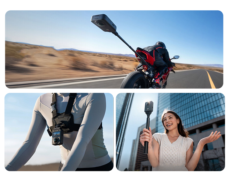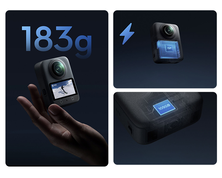 Творческие возможности и рабочий процесс10-битный цвет и режим D-Log M обеспечивают широкие возможности для цветокоррекции. Невидимая селфи-палка автоматически удаляется из кадра в 360° видео. Приложения DJI Mimo и DJI Studio предлагают инструменты для редактирования, включая ИИ-трекинг и стабилизацию GyroFrame, а также поддерживают интеграцию данных со сторонних GPS-устройств |