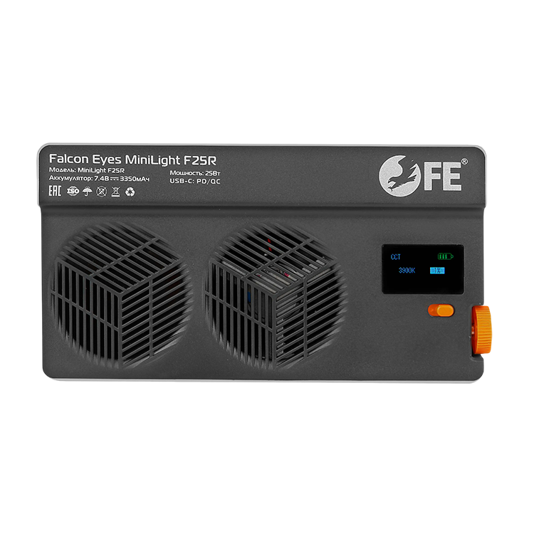 Осветитель Falcon Eyes MiniLight F25R оснащен 152 высокоэффективными светодиодами, обеспечивающими мощность 25 Вт и освещенность 3500 люкс на расстоянии 0.5 метра. Устройство поддерживает бицветный режим с регулировкой цветовой температуры от 2500K до 9000K и полноценный RGB-режим с доступом к 359 оттенкам. Показатели цветопередачи CRI и TLCI ≥97 гарантируют точное воспроизведение оттенков. Плавная регулировка яркости от 1% до 100% позволяет точно адаптировать световой поток под любые условия съемки