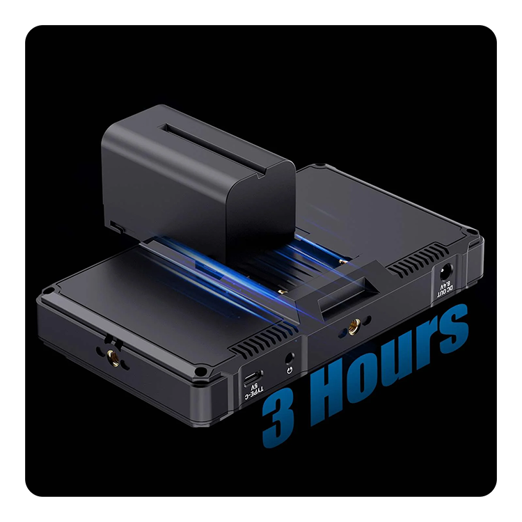 Гибкие интерфейсы и питаниеHDMI-интерфейс поддерживает разрешение до 4K 60p с сквозным выводом и аудиомониторингом через 3.5 мм разъем. Выход питания DC 8.4V позволяет запитывать зеркальные и беззеркальные камеры. Питание осуществляется через разъем DC 12V, порт Type-C 5V/3A или батареи серии NP-F с автономностью до 3 часов. Два резьбовых отверстия 1/4"-20 и комплектный кронштейн с регулируемым углом наклона обеспечивают универсальное крепление |