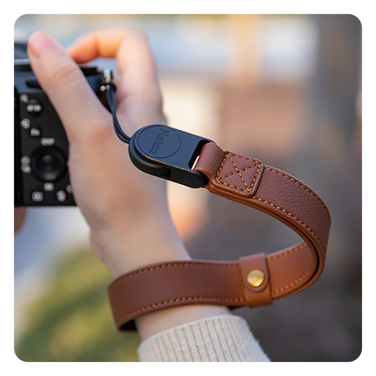 Ремешок Classic Leather Wrist Strap предназначен для страховки камеры во время городской или тревел съёмки, предотвращая случайное падение при активном перемещении. Его ключевое отличие от тканевых аналогов заключается в классическом кожаном дизайне, сочетающем премиальный внешний вид с практичностью. Пряжка с механизмом lock‑in & press‑out позволяет одной рукой за секунду отсоединить или зафиксировать ремешок одной рукой. Констуркция выдерживает статическую нагрузку до 20 килограммов и устойчива к истиранию, загрязнениям и намоканию. Небольшой вес и прочные материалы делают аксессуар незаменимым для репортажной фотографии, путешествий и уличных проектов