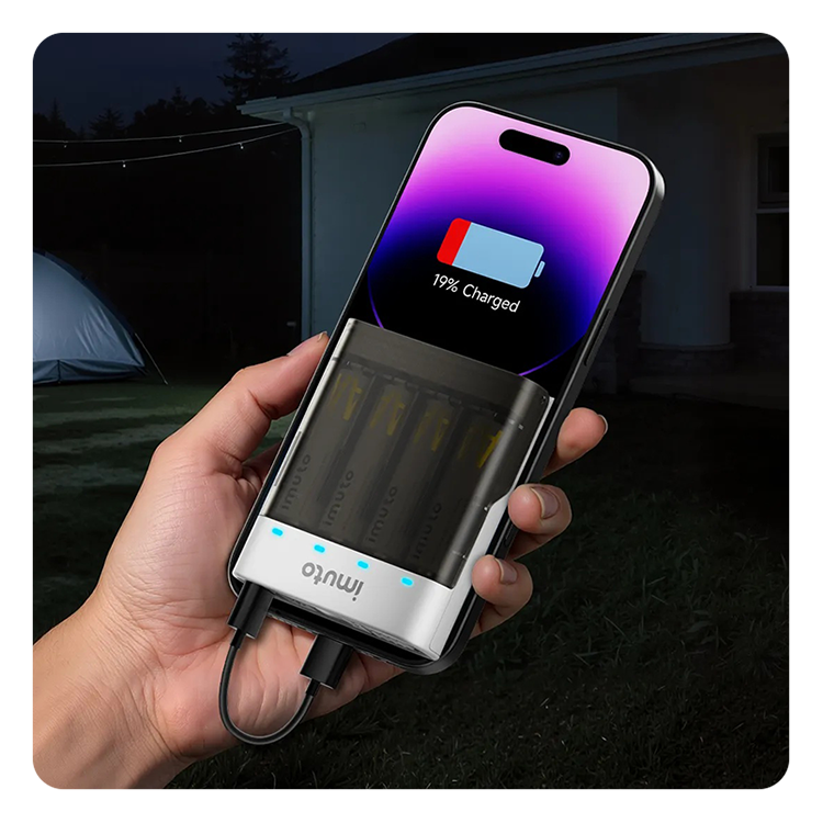 4 аккумуляторные батарейки Imuto AA 3600 mWh + зарядный кейс