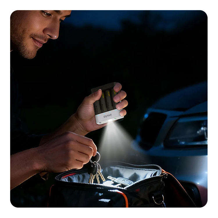 Расширенная функциональностьЗарядный кейс поддерживает зарядку и выдачу энергии одновременно, превращая его во временный источник питания для маломощных USB устройств. Интегрированный светодиодный фонарь работает от установленных аккумуляторов и пригодится при отключении электричества, в кемпинге, автомобильном аварийном наборе или на открытом воздухе |