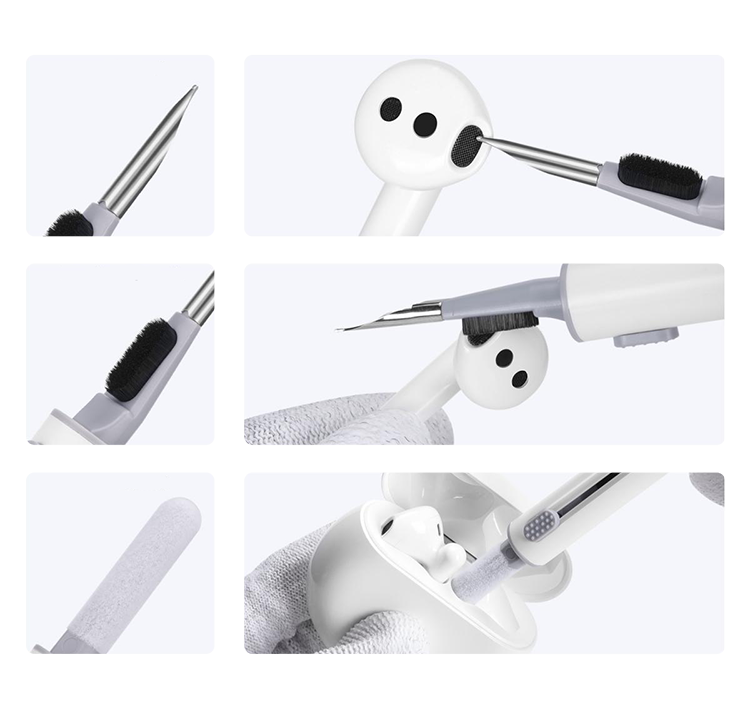 Специализированный набор для комплексной очистки наушников обеспечивает уход за всеми критически важными зонами: внешними поверхностями, звуковыми каналами и зарядным кейсом. Каждый инструмент в наборе решает конкретную задачу - от удаления пыли и жировых следов до антибактериальной обработки. Многоэтапный процесс очистки гарантирует восстановление первоначального вида аксессуаров и поддерживает гигиеническую чистоту при регулярном использовании