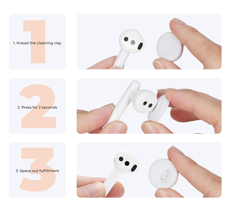 Трехсторонняя очищающая ручка объединяет три функции: головка из микрофибры для сбора пыли, упругий ворс для удаления загрязнений из труднодоступных мест и наконечник для точечной очистки звуковых каналов. Микрофибровая салфетка выполняет финальную полировку поверхностей, устраняя микроразводы и придавая устройству безупречный внешний вид