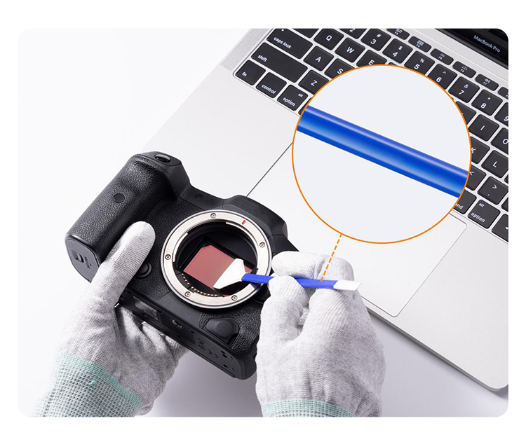 Новая модель чистящих "шваброчек" для удаления пыли и грязи с матрицы и видоискателя камеры. Каждая имеет индивидуальную уаковку, благодаря чему её ужобно брать с собой. Специальная конструкция с двойным слоем микрофибры толщиной 270 г/м² обеспечивает эффективное удаление частиц без образования разводов и без риска повреждения чувствительных поверхностей. Гибкая рукоятка из качественного ABS-пластика адаптируется к углу наклона для максимального контакта с очищаемой поверхностью.