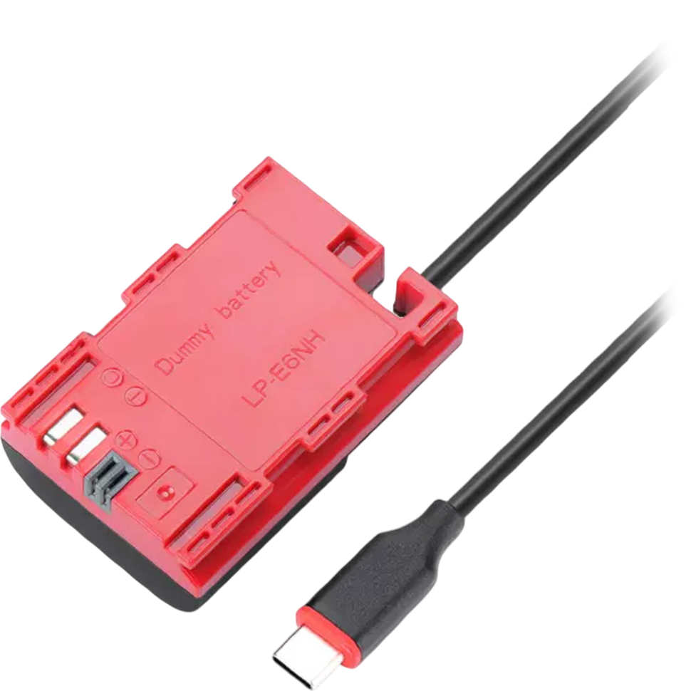 Адаптер питания в виде "пустышки" аккумулятора LP-E6NH позволяет подключить питание к камере Canon по Type-C от сетевого адаптера или power bank