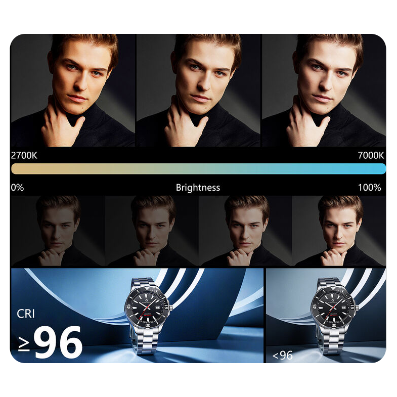 Профессиональный свет и управлениеСердцем осветителя является мощная 40 ваттная COB матрица с высоким индексом цветопередачи CRI 96, обеспечивающая естественные цвета кожи и точную цветопередачу. Цветовую температуру можно регулировать плавно от 2700 до 7000 K и яркость от 0 до 100% с помощью встроенного диммирующего колесика. Для творческих задач доступны восемь световых эффектов, включая имитацию молнии, свечи, стробоскопа и режим SOS. Эффективная система теплоотвода предотвращает перегрев при длительной работе |