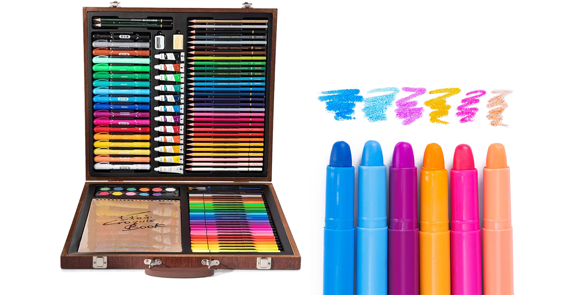 Набор для рисования, который поможет ребенку раскрыть свой творческий потенциал и выразить свою фантазию на бумаге. Также он поможет ребенку развить мелкую моторику и логическое мышление. В комплект входит 103 предмета для рисования: гуашь, акварель, масляные карандаши, мелки, альбом форматом А4 и дополнительные принадлежности