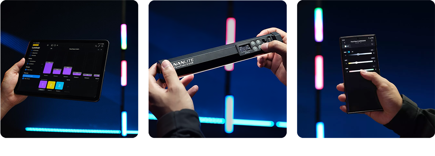 Гибкость управления и питанияУправление прибором осуществляется несколькими способами: через интуитивный интерфейс на корпусе, беспроводное приложение Nanlink App 2.0, протоколы DMX/RDM или встроенный LumenRadio CRMX, обеспечивая полный контроль в любых съемочных условиях. Встроенный аккумулятор емкостью 3200 мАч позволяет работать без внешних кабелей, а порт Type C с поддержкой широкого диапазона входных напряжений и протокола Power Delivery 3.0 дает возможность питаться от современных адаптеров и Power bank |