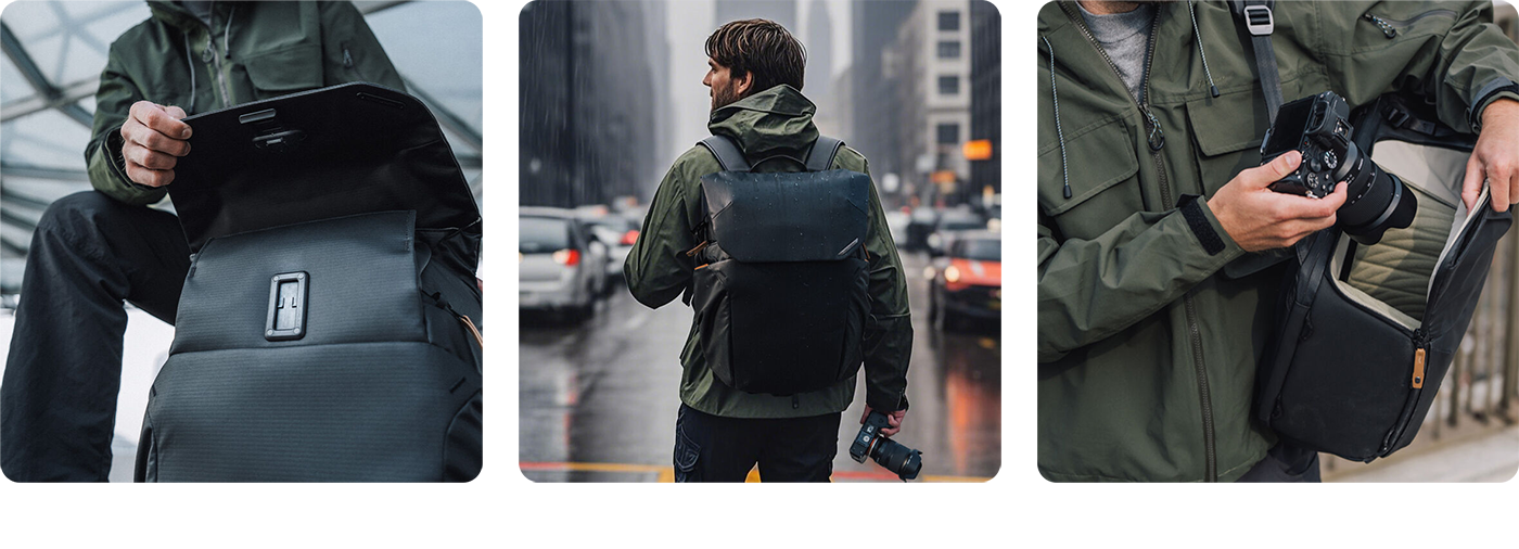 Инновационная организация пространстваРюкзак PGYTECH OneGo 2 оснащен системой полного заднего доступа с раскрытием на 180 градусов и кастомными разделителями для персонализированной компоновки. Магнитная верхняя панель обеспечивает мгновенный доступ к повседневным предметам, а боковой карман позволяет быстро извлекать камеру. Усиленное дно с амортизирующими панелями гарантирует защиту оборудования при эксплуатации в различных условиях |