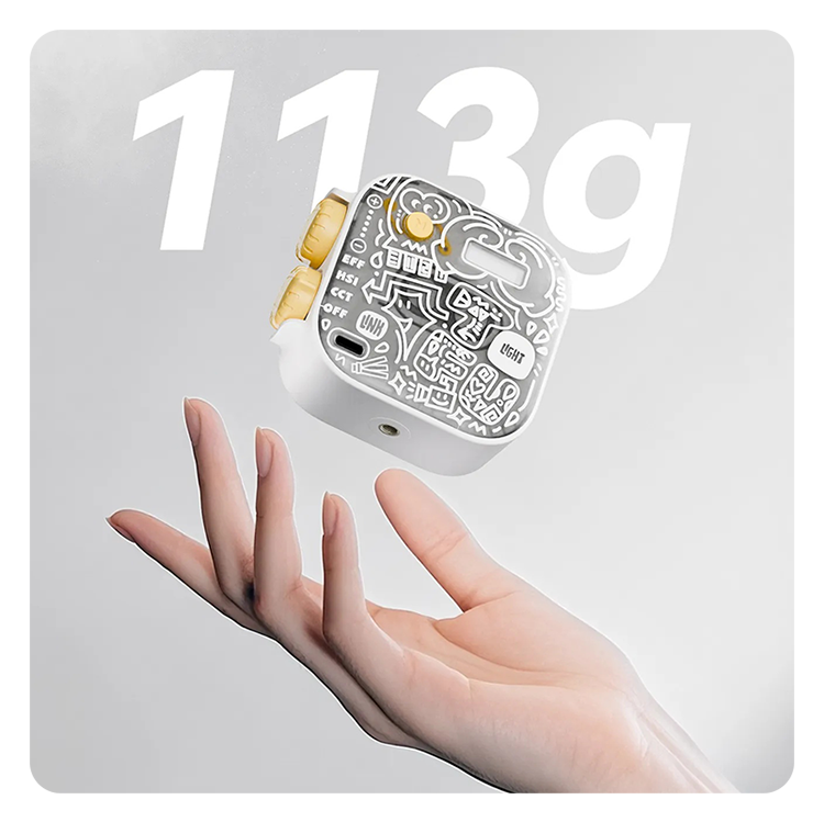 Устройство весом 113 грамм легко помещается в карман или небольшую сумку. Эргономичная система управления включает шкалу переключения режимов, физические кнопки и бесступенчатый регулятор для точной настройки параметров даже в темноте. Двадцать один световой эффект, включая имитацию свечи, полицейской мигалки и огней клуба, расширяет творческие возможности
