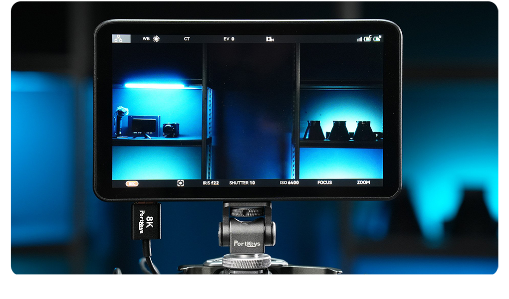 Яркость и точность цветопередачиНакамерный монитор Portkeys LS7P оснащен 7" IPS дисплеем с разрешением 1920×1080 пикселей и яркостью 1000 кд/м², что обеспечивает комфортный просмотр даже при прямом солнечном свете. Панель с глубиной цвета 10 бит (8+2 FRC) и контрастностью 1000:1 покрывает 100% цветового пространства Rec.709. Угол обзора 160° сохраняет точность цветопередачи при любом ракурсе. Каждый монитор индивидуально калибруется на заводе для гарантии эталонной цветопередачи |
