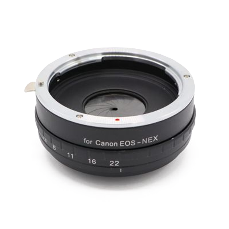 Функциональное переходное кольцо для фототехники. Представленный аксессуар предназначен для установки объективов, которые имеют крепление Canon EF, на камеры Sony NEX. Ключевой особенностью представленной модели является возможность регулировки диафрагмы. Производителем предусмотрено 14 лепестков диафрагмы