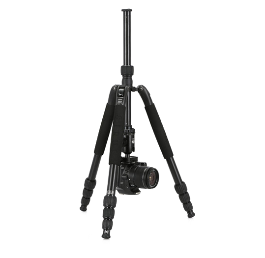 Съёмная центральная колонна может быть установленна "вниз головой", что позволяет снимать с низкого ракурса. Также вы можете установить её на одну из ног штатива, и таким образом получите полноценный профессиональный монопод. Наконечники ножек оснащены противоскользящими накладками, а также металлическими шипами, что позволяет работать на любой поверхности