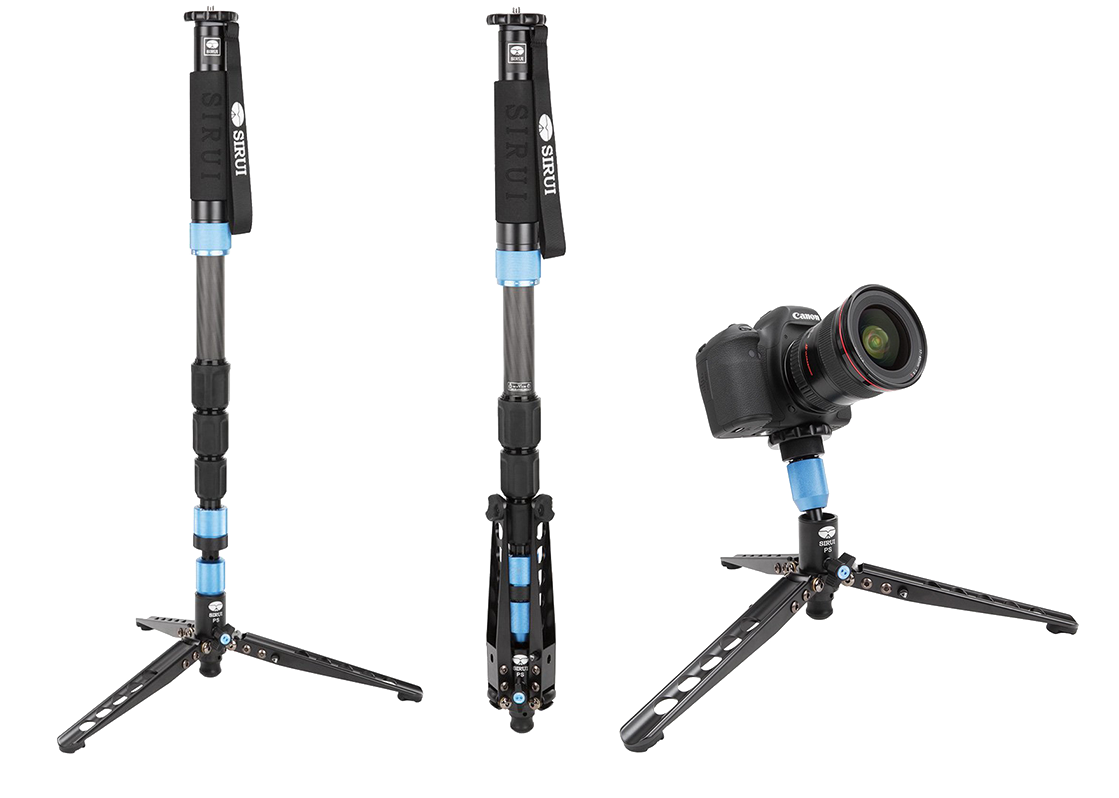 P-324SR Серия моноподов P-SR отличается усиленной треногой, с возможностью отделить её, и использовать как мини штатив, подходящий даже для крупных камер. При работе без ножек, вы сможете использовать P-324SR как стандартный монопод с резиновым наконечником или шипом. Конструкция из карбона имеет 4 секции с максимальной высотой 1,75 м. Специальный регулируемый блок у основания позволяет устанавливать угол наклона от 0° до 20°. Также, в этой модели применена запатентованная технология панорамирования от Sirui, благодаря чему вся конструкция способна развернуться на 360°
