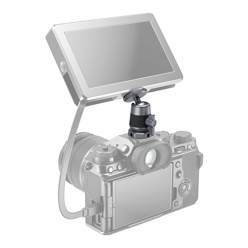 Компактное крепление с шаринром для установка мониторов, экшн-камер, осветительных приборов, микрофонов и иных приспособлений. Устройство обеспечивает вращение монитора на 360° и наклон на 135°. Грузоподъемность составляет 1,5 кг