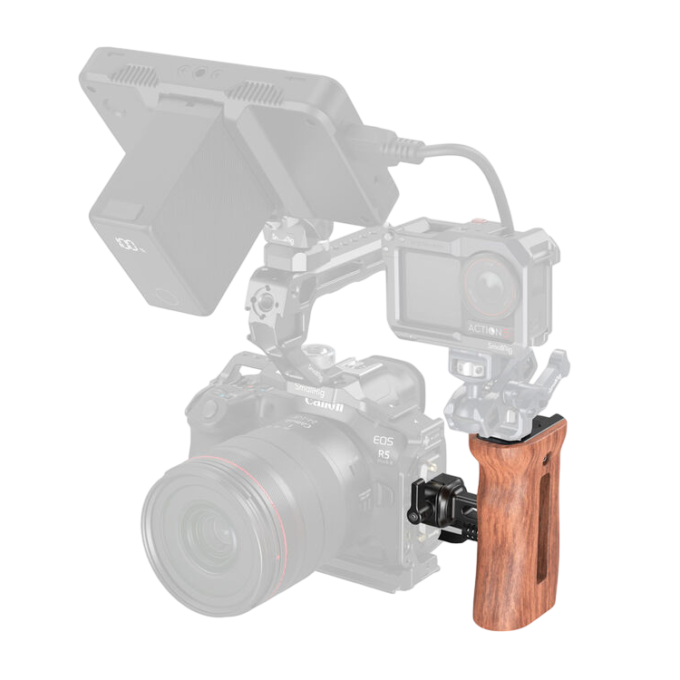 Универсальная рукоятка с возможностью установки на левую и правую сторону, а также регулировки крепления по высоте. Благодаря этому вы сможете настроить хват рига для максимально комфортной съёмки. Основной корпус выполнен из настоящего дерева, что обеспечивает приятные тактильные ощущения и лёгкость конструкции