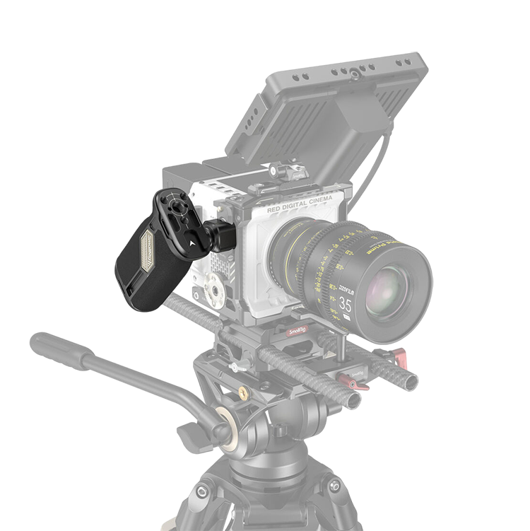 В верхней части рукоятки расположены резьбовые отверстия 1/4" и 3/8", а также крепление типа "холодный башмак" для установки света, микрофона, монитора или других аксессуаров. Рукоятка оснащена нескользящей силиконовой поверхностью, а при необходимости можно добавить ручной ремень