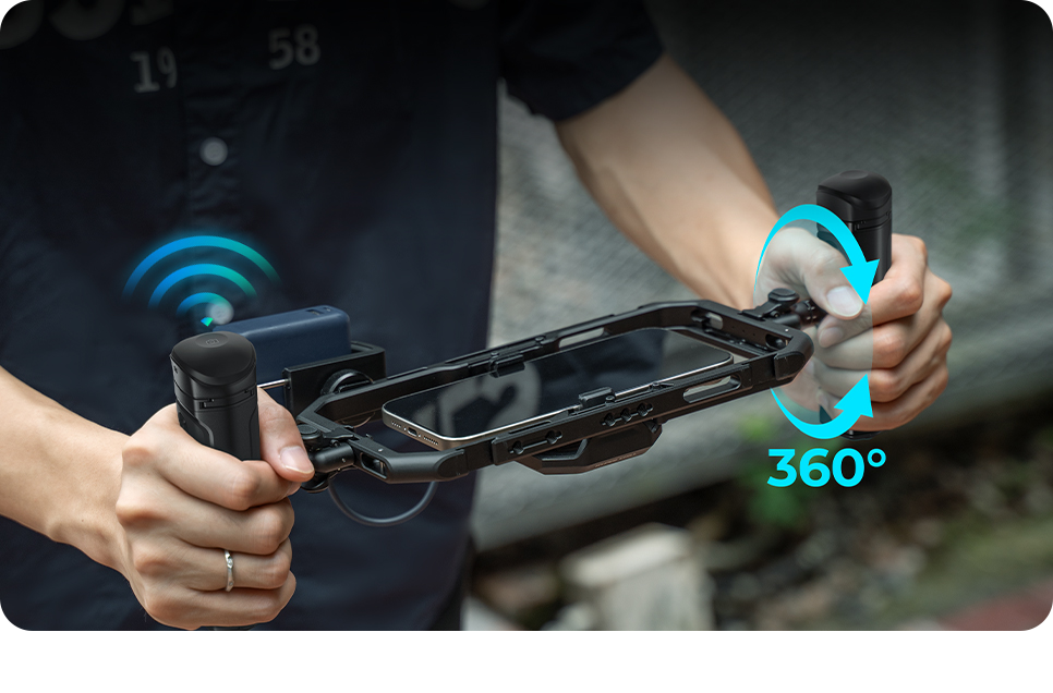 Эргономика и оперативность съемкиКомплект открывает возможность по сборке своего рига с осветителем и внешним микрофоном. Подключить дополнительное оснащение можно посредством Type-C хаба. Две боковые рукоятки со свободным вращением позволяют настроить удобный угол наклона, а на одной из них предусмотрена дистанционная кнопка старта записи. При помощи отдельного держателя в систему можно добавить компактный power bank для автономности |