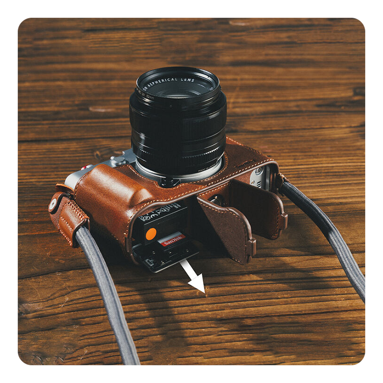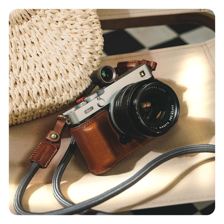 Кожаный чехол для камеры Fujifilm X-E5 гармонично сочетает классическую эстетику с практической пользой. Изготовленный из дышащей натуральной кожи, он не только придает камере уникальный винтажный шарм, но и обеспечивает надежную защиту корпуса. Внутренняя отделка из микрофибры гарантирует плотное прилегание и защищает покрытие камеры от царапин, сохраняя ее безупречный внешний вид |