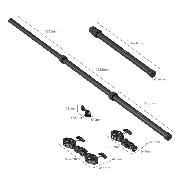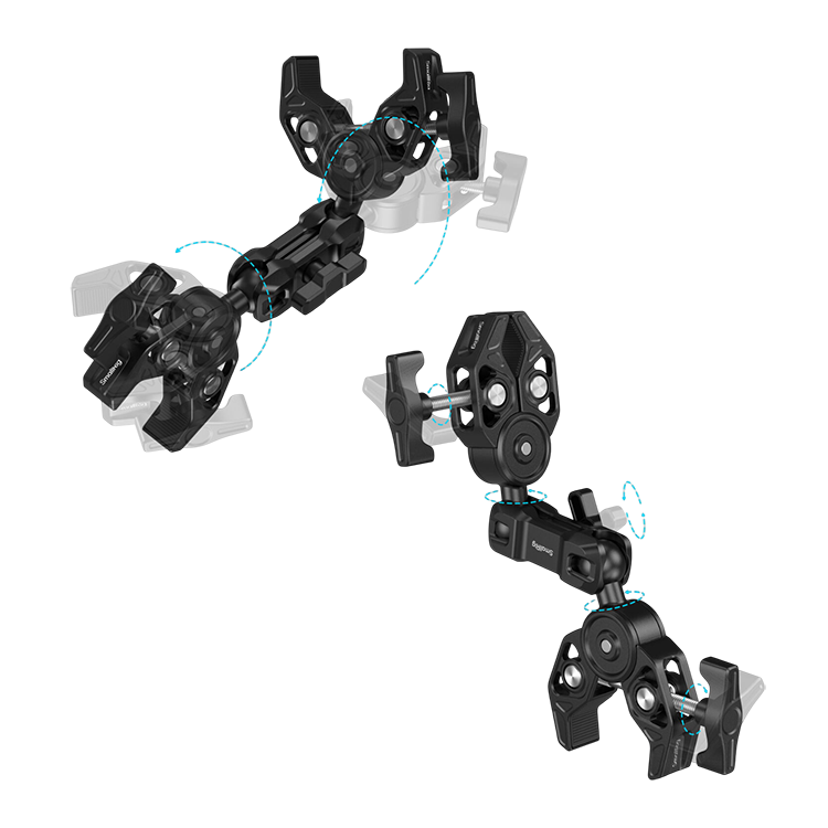Велокрепление SmallRig 5459 разработано для эффектной съёмки на экшн-камеру, включая модели 360°, с верхнего ракурса. Конструкция изготовлена из авиационного алюминиевого сплава, что обеспечивает исключительную прочность и долговечность при динамических нагрузках до 0.5 кг. Зажимы с резиновыми противоскользящими прокладками надежно охватывают цилиндрические поверхности диаметром от 14 до 58 мм, а также плоские поверхности толщиной до 58 мм, что позволяет крепить устройство на раме велосипеда, мотоцикла и других конструкциях