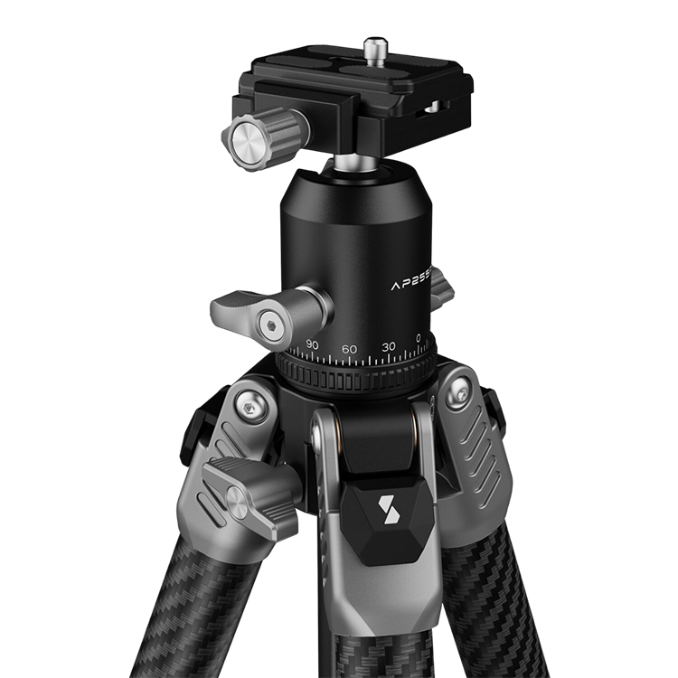 Компактная шаровая голова с плавным ходом обеспечивает панорамирование на 360° и наклон до 90°, выдерживая нагрузку до 5 кг, а значит подходит даже для больших сетапов. Быстросъемная площадка с резьбой 1/4" совместима с большинством типов камер и клеток. Штатив оснащен резьбовым отверстием 3/8" для установки головы, что также позволяет при необходимости использовать другие совместимые головы или подвесы