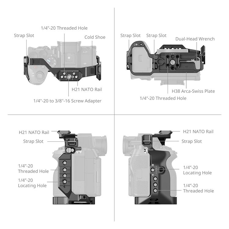 Профессиональная клетка SmallRig серии HawkLock разработана для беззеркальной камеры Sony a7 V, a7R V и a7 IV, обеспечивая надежную защиту корпуса при сохранении полного доступа ко всем органам управления. Конструкция из алюминия и стали фиксируется на камере с помощью винта 1/4" и дополнительных точек крепления, исключающих проворот даже при активном использовании тяжелой оптики и аксессуаров. Множество резьбовых отверстий 1/4" и 3/8" с направляющими штифтами, холодный башмак предоставляют широкие возможности для построения индивидуальной съемочной конфигурации