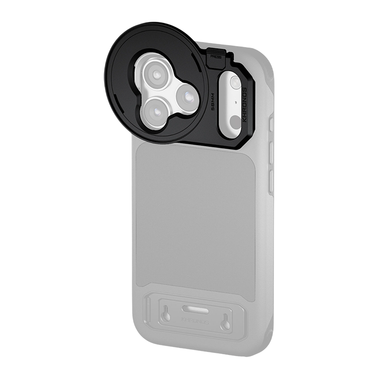 Профессиональный контроль над изображением Адаптер позволяет использовать любой магнитный светофильтр диаметром 58мм с чехлами серии Khronos для iPhone 17 Pro. Платформа надежно фиксируется в специальном пазе на корпусе чехла, а дополнительная защелка с предохранителем исключает случайное выпадение даже при активном движении. С его помощью вы сможете использовать профессиональные решения для повышения качества мобильного фото и видео