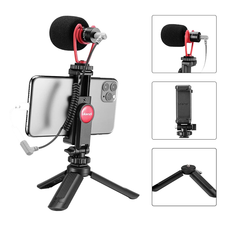 Функциональный комплект для мобильной съёмки с мобильного гаджета. В комплектацию входит направленный микрофон, держатель для смартфона и настольная тренога. Представленный набор подойдет для трансляций и записи блога. Компактный комплект является наилучшим решением при проведении выездной работы и во время путешествий