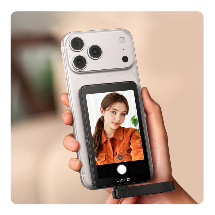 Стоит закрепить HD монитор на спинке смартфона, как он превратится в профессиональную камеру для селфи, записи блога или ведения стрима. Система Plug&Play не требует сложной настройки, ведь достаточно подключить устройство к телефону через порт Type-C, чтобы сразу видеть себя в кадре с идеальной синхронизацией. Магнитное крепление MagSafe обеспечивает автоматическое выравнивание и мгновенную фиксацию, гарантируя стабильность даже при динамичной съемке