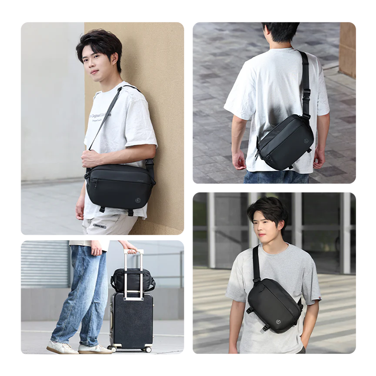 Изготовлена из водоотталкивающего материала плотностью 420D с усиленными швами и влагостойкими молниями. Анатомическая лямка из дышащего сетчатого материала распределяет нагрузку и обеспечивает комфорт при длительном ношении. Габариты конструкции оптимизированы для переноски в общественном транспорте и хранения под сиденьем. Дополнительные точки крепления совместимы с карабинами и различными аксессуарами. Вес пустой сумки составляет 580 грамм, что делает ее идеальным выбором для ежедневного использования и коротких путешествий