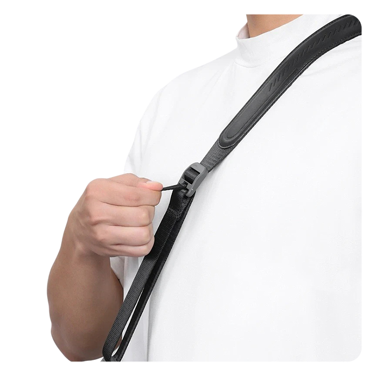 Система плавной регулировки длины от 108 до 140 см позволяет одним движением адаптировать ремень под любой рост. Прочная пластиковая пряжка из термопласта надёжно фиксирует положение и защищает корпус камеры от царапин