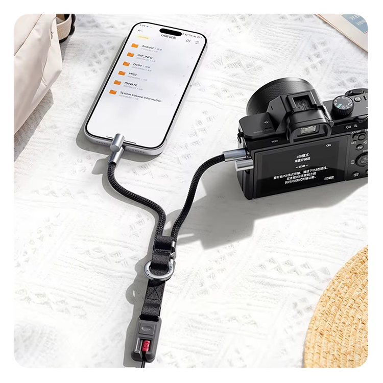 На одном из концов ремня встроен кабель Type-C 2.0, поддерживающий скоростную зарядку мощностью до 240W и передачу данных на скорости 480 Мбит/с. Благодаря этому вы сможете быстро копировать снимки с камеры на смартфон для публикации, или заряжать гаджеты через Power bank. Надежная конструкция выдерживает до 10 000 циклов подключения и 5 000 изгибов