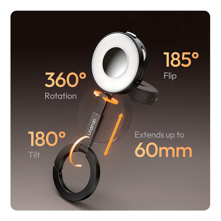 Гибкая конструкция и автономностьОсветитель оборудован кронштейном 60 миллиметров, что позволяет наклонять конструкцию на 180 градусов и поворачивать на 360 для точного позиционирования света. Встроенный аккумулятор емкостью 600 мАч обеспечивает до 75 минут работы на максимальной мощности и до 48 часов в экономичном режиме, поддерживая быструю зарядку через порт Type C. Эргономичная конструкция также позволяет использовать штангу в качестве ручки или подставки для комфортного просмотра контента |