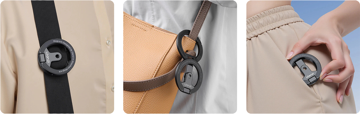В сложенном состоянии толщина конструкции всего 8 мм, а хранить его можно даже в кармане джинс. Помимо магнита, MA02 оснащен универсальным креплением 1/4", что обеспечивает совместимость с треногой или кронштейном. Запатентованный карабин MagLock обеспечивает удобство переноски и фиксации на ремнях или сумках. Максимальная нагрузка 350 грамм охватывает большинство смартфонов с дополнительными аксессуарами
